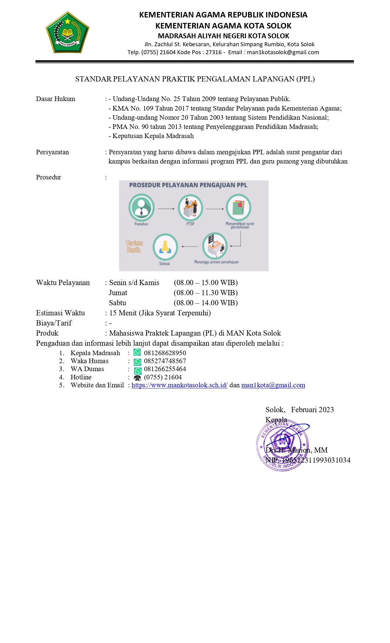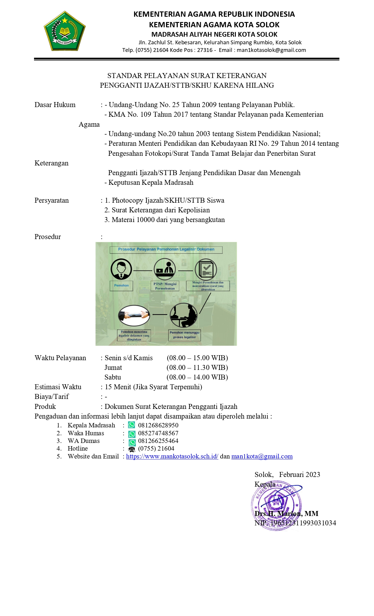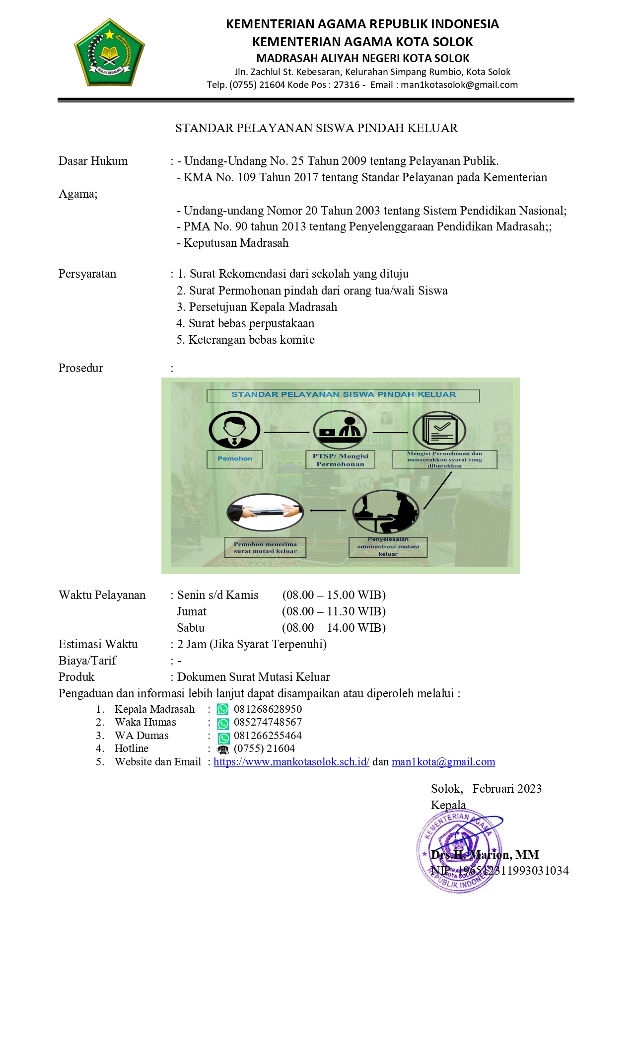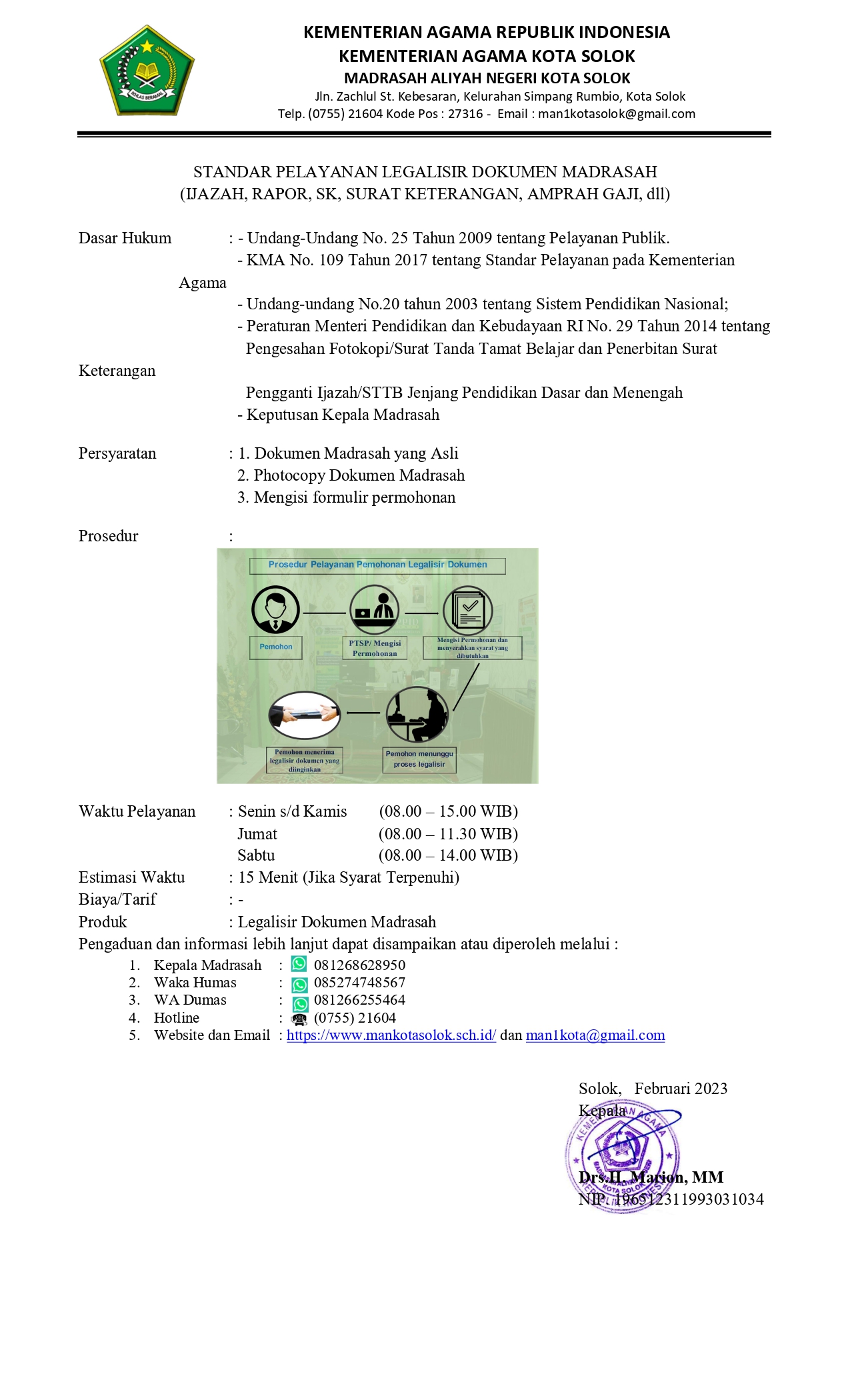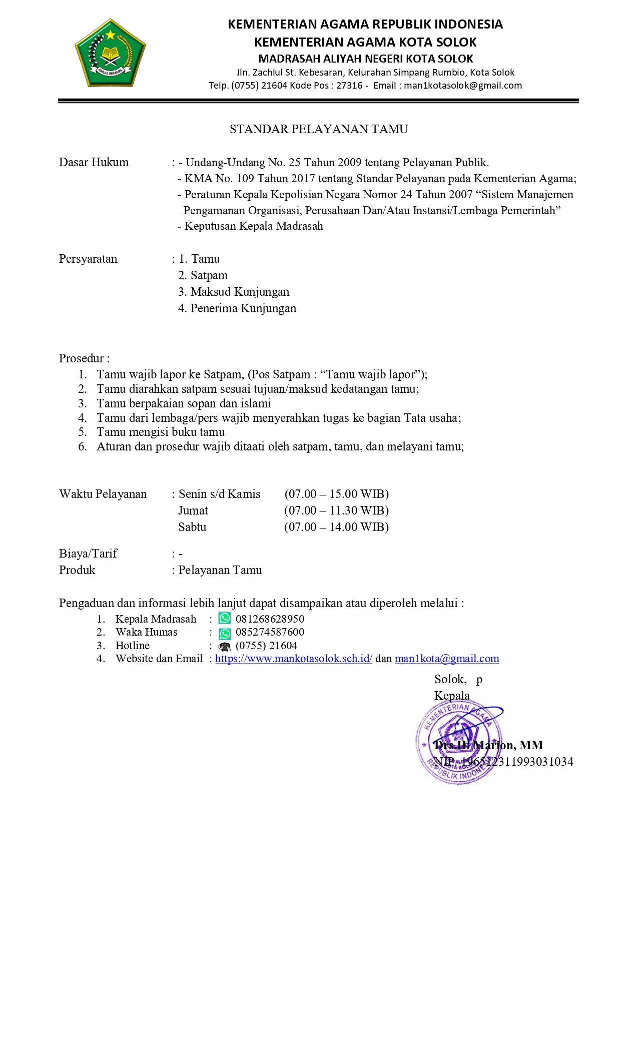 STANDAR PELAYANAN MAN KOTA SOLOK