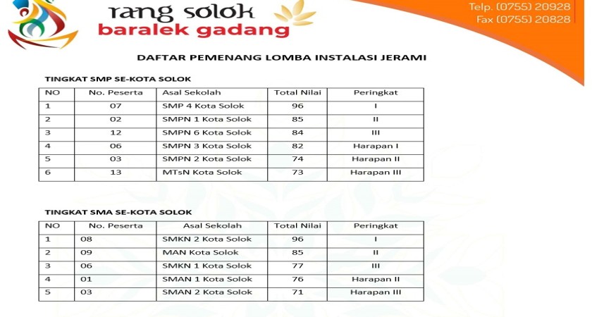 Kota Solok, Humas — Madrasah Aliyah Negeri (MAN) Kota Solok kembali menorehkan prestasi membanggakan dalam ajang tahunan Rang Solok Baralek Gadang 2025 yang dilaksanakan pada tanggal 11 September 2025. Dalam lomba instalasi jerami tingkat SMA/SMK/MA se-Kota Solok yang digelar oleh Dinas Pariwisata, tim MAN Kota Solok berhasil meraih Juara 2 berkat karya kreatif mereka yang mengangkat tema Warisan Budaya Minangkabau, Senin (15/09/25)